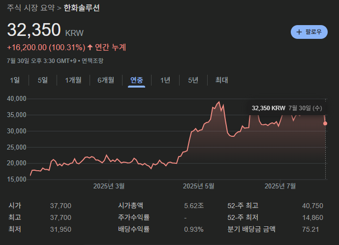 - 주가: 약 32,100원 (2025.07.30 기준)